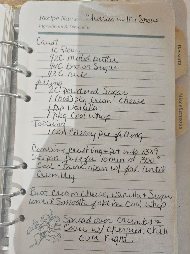 I’ve been organizing all of the loose recipes written on index cards and notebook paper; taking pictures of all the recipes and organizing them into categories.